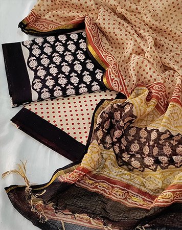 - Premium hand block printed suits crafted with care.